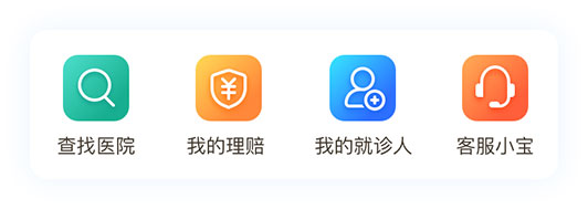 首頁界面將用戶最關(guān)心的部分展現(xiàn)出來,用戶可以通過點(diǎn)擊一鍵理賠極速辦理。其功能板塊包含了查找醫(yī)院、我的理賠、我的就診人、客服小寶三大功能。運(yùn)營banner選擇插畫樣式,能夠緩解用戶的焦慮情緒,同時(shí)理賠須知采用小插畫加文字說明的形式,清晰且直觀。用戶可通過上滑查看界面內(nèi)容,優(yōu)化用戶交互體驗(yàn)。
